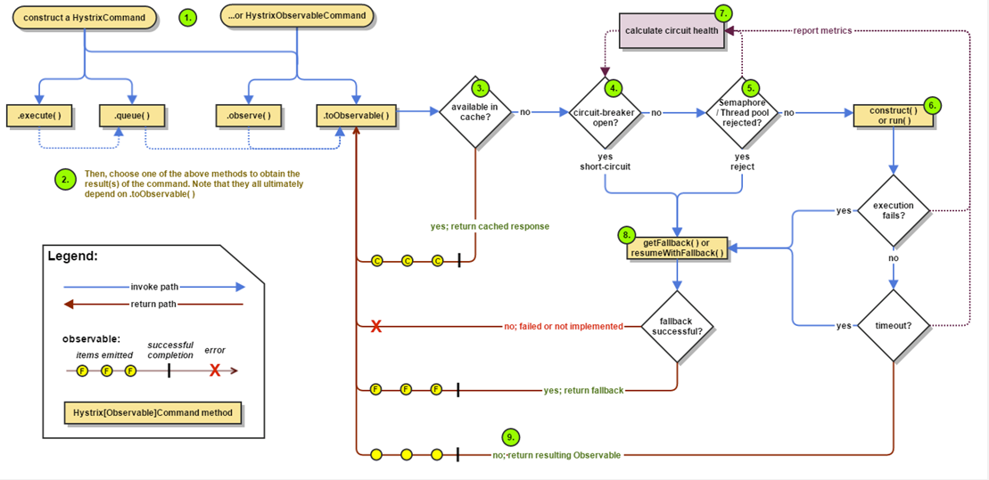 在执行过程中,如果出现异常或超时,会直接到第 8 步,执行成功就返回结果,需要注意的是执行的结果会将数据上报给断路器,断路器会根据上报的数据来判断断路器是否打开。到此为止,整个 Hystrix 的工作便完成了。