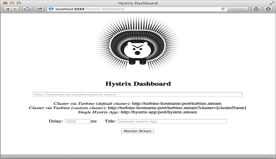 在 Hystrix Dashboard 主页面,我们可以输入需要监控的 Stream 地址,Stream 地址会输出监控的原始数据,Dashboard 就是将这些数据图形化展示。