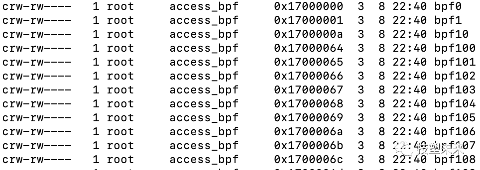 安装完成后,上面的Wi-Fi抓包权限问题就彻底解决了,同时再用“ls -la | grep bp”命令查看,果然BPF的权限全部被修改了,而且多出了更多的BPF设备: