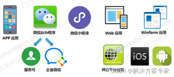 适用开发 适用开发:快速构建支持多种客户端的服务端程序,支持APP、B/S、C/S跨平台移动终端等。