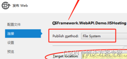 在MSFramework.WebAPI.Demo.IISHosting项目点右键【发布】,弹出发布Web对话框,Publish method 选择【File System】文件系统。