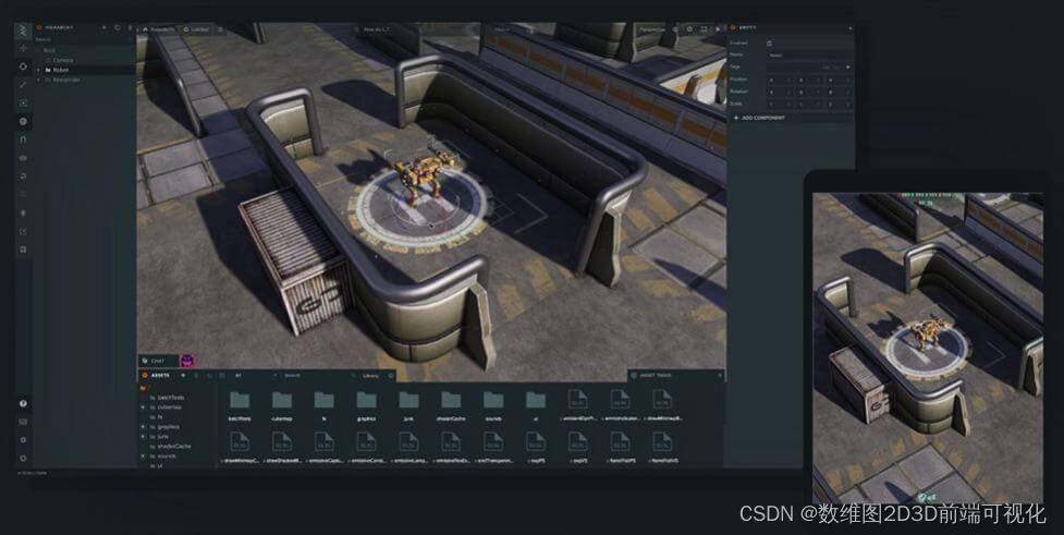 PlayCanvas是一个轻量级的全功能3D网页游戏和图形引擎,是交互式 Web 内容的可视化开发平台。它是开发人员最喜欢的WebGL 3D游戏引擎。具有令人印象深刻的功能列表,可为游戏开发人员提供构建 Web 优先图形丰富的游戏所需的一切。PlayCanvas被许多游戏开发商使用。PlayCanvas不仅为游戏而构建,还可用于构建AR(增强现实)和VR(虚拟现实)应用程序。
