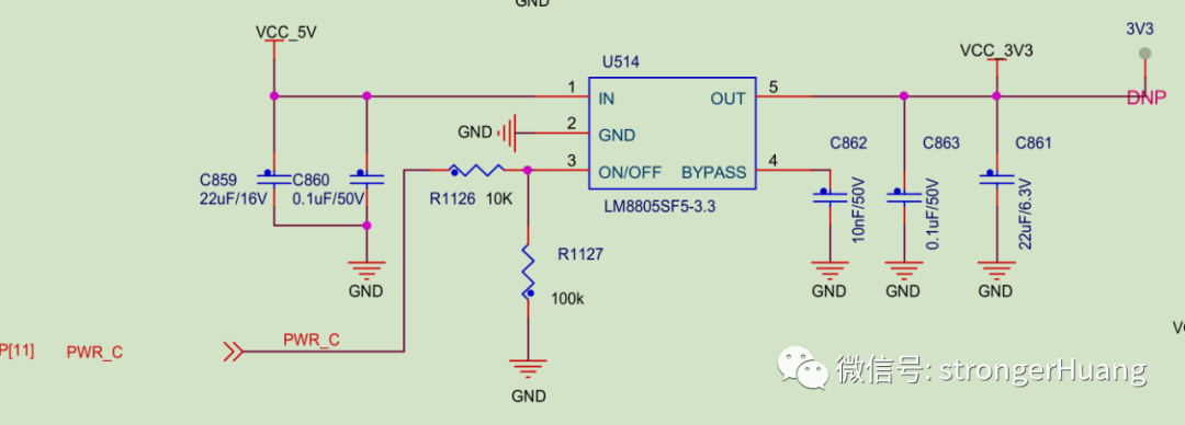 可能聪明的小伙伴已经注意到电路的不同了,一个是通过10K电阻上拉来自举,一个是通过单片机进行控制,当然,PWR_C的电平不是0V就是5V。
