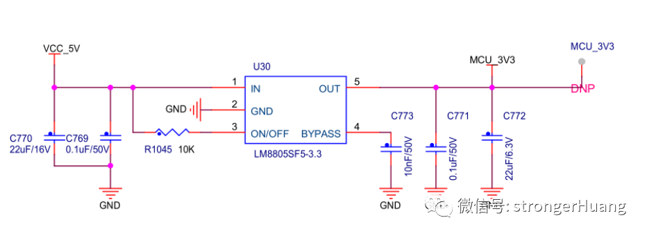 这个电路的电源输入同样来自DC-DC,跟上面的LDO电源来源一样,输出接的是另外一个电路(这个不方便透露),电流需求大概在80MA左右,他从来没有出现过问题,那么问题来了,排除了上面的原因还有那些原因呢?