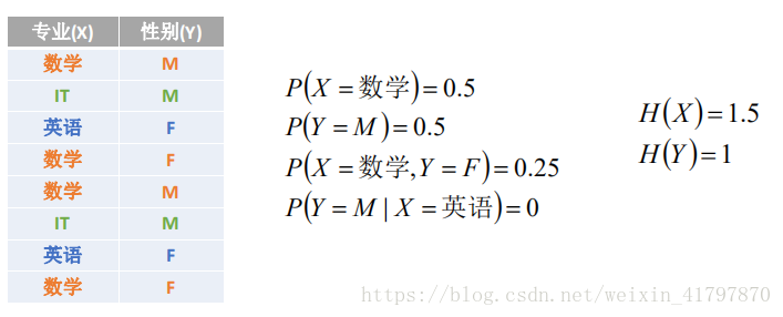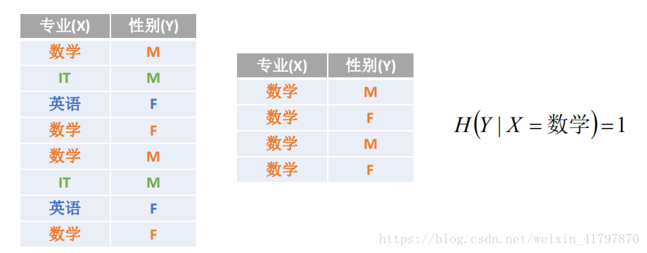 当专业为数学时,Y的信息熵的值为:H(Y|X=数学)