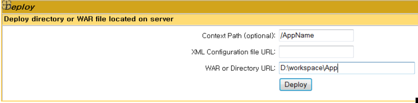 若一个web应用结构为**D:workspaceWebAppAppNameWEB-INF*,**利用控制台进行部署的方式如下:进入tomcat的manager控制台的deploy区域——在Context path中键入"XXX"(可任意取名)——在WAR or Directory URL:键入D:workspaceWebAppAppName(表示去寻找此路径下的web应用)——点击deploy按钮。