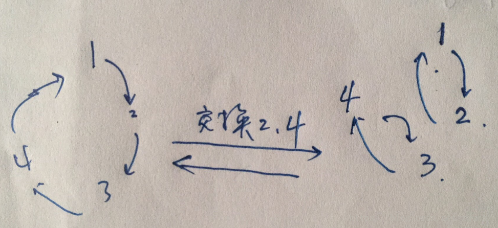 交换2,4,这样本来2指向的是3,变成了4指向的1