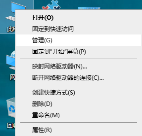 回到桌面,鼠标选中“此电脑”图标,右击,点击“管理”即可。