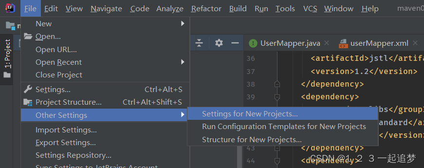 新版的idea可能不叫other setting直接就是Setting for New projects 都是一样的 这种设置是以后创建新项目都会采用这种配置。
