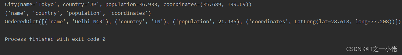 # 定义一个命名元祖city,City类,有name/country/population/coordinates四个字段