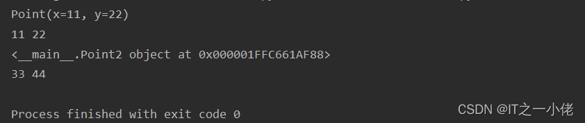 >>> p = Point(11, y=22) # instantiate with positional args or keywords