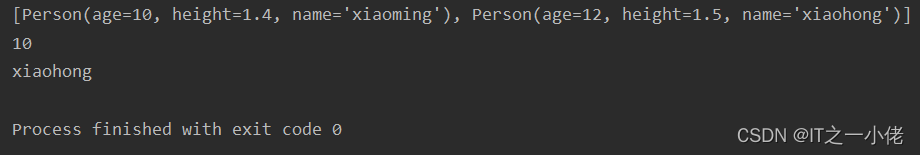 data2 = [Person(10, 1.4, 'xiaoming'), Person(12, 1.5, 'xiaohong')]