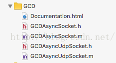 <一> 下载AsyncSocket https://github.com/robbiehanson/CocoaAsyncSocket/ 类库,将GCD文件夹下的GCDAsyncSocket.h, GCDAsyncSocket.m, GCDAsyncUdpSocket.h, GCDAsyncUdpSocket.m 文件拷贝到自己的project中