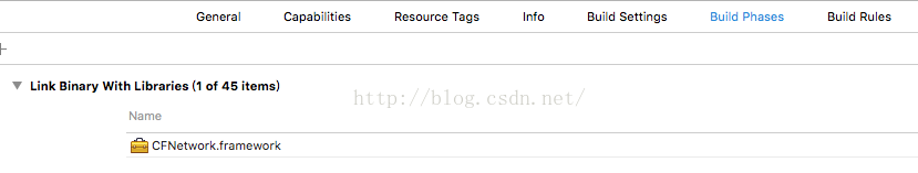 <三> 添加CFNetwork.framework。