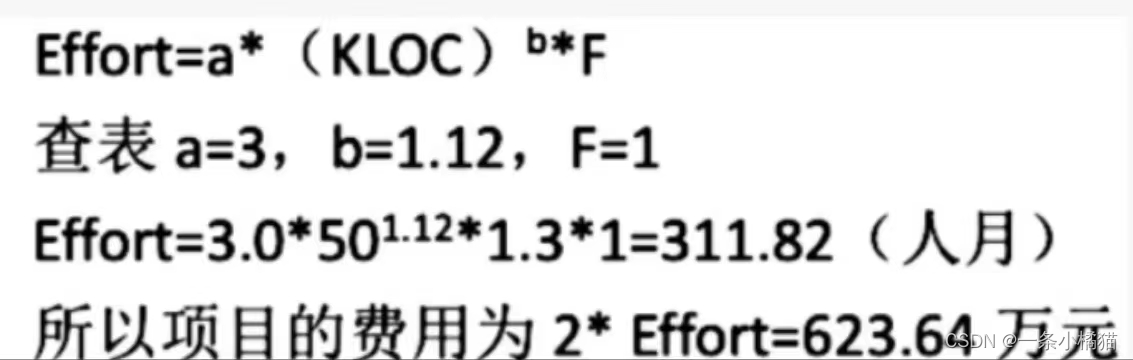 (2)如果某软件公司正在进行一个项目,预计有30KLOC的代码量,项目是中等规模的有机类型的项目,采用中间 COCOMO模型,项目属性中所有属性均为正常,请计算项目是多少人月的规模。如果费率是2万元/人月,则项目的费用是多少?