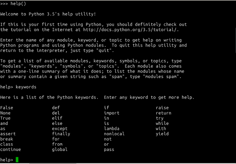 False def if raise None del import return True elif in try and else is while as except lambda with assert finally nonlocal yield break for not class from or continue global pass
