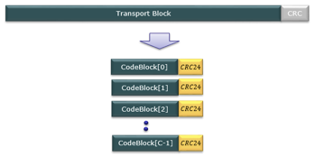 过长的码块会被分割为多个码块,并对每个码块进行CRC。