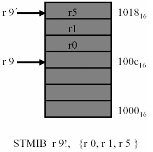 STMIB R0!,{R1,R2, R3,R14}