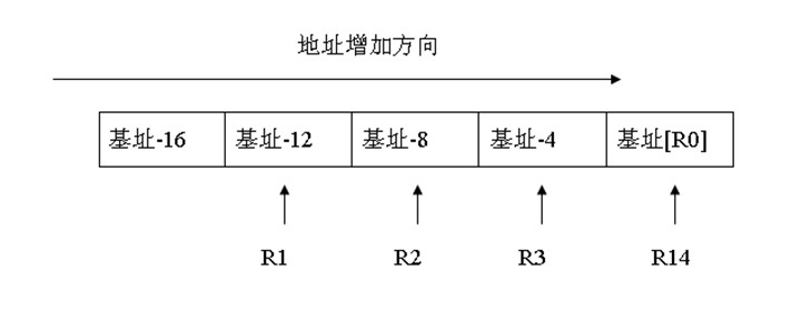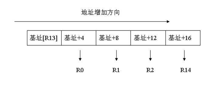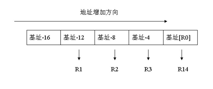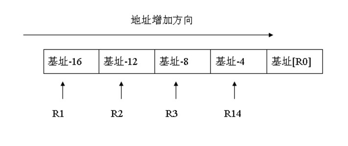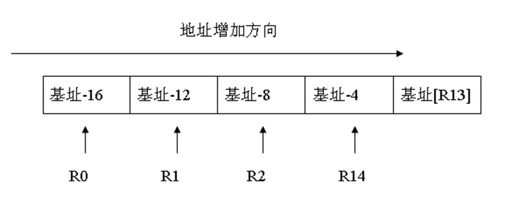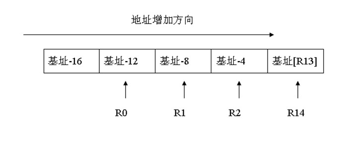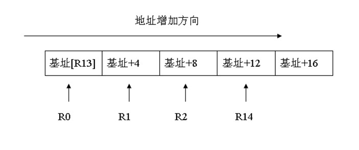 空递增入栈,R13为基址地址