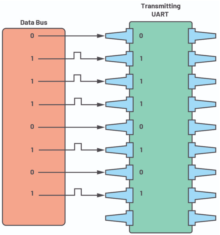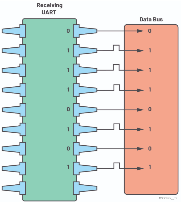第五步:接收UART将串行数据转换回并行数据,并将其传输到接收端的数据总线。
