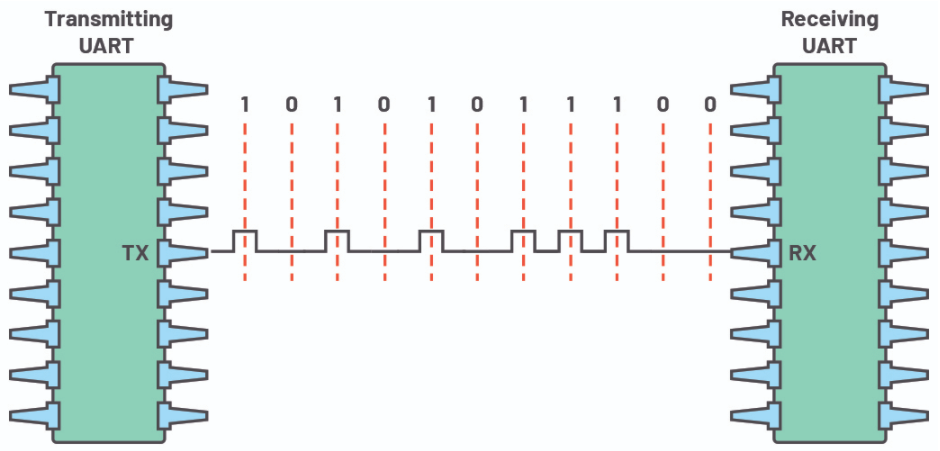 UART代表通用异步接收器/发送器。它不是像SPI和I2C这样的通信协议,而是微控制器中的物理电路或独立的IC。UART的主要目的是发送和接收串行数据。关于UART最好的一点是其仅使用两条线在设备之间传输数据。