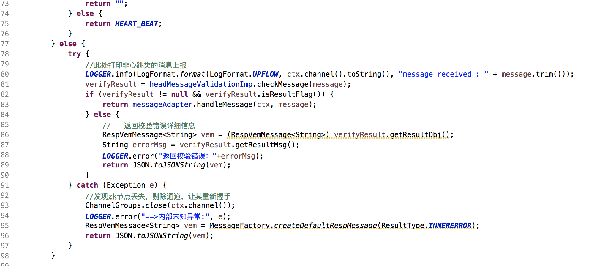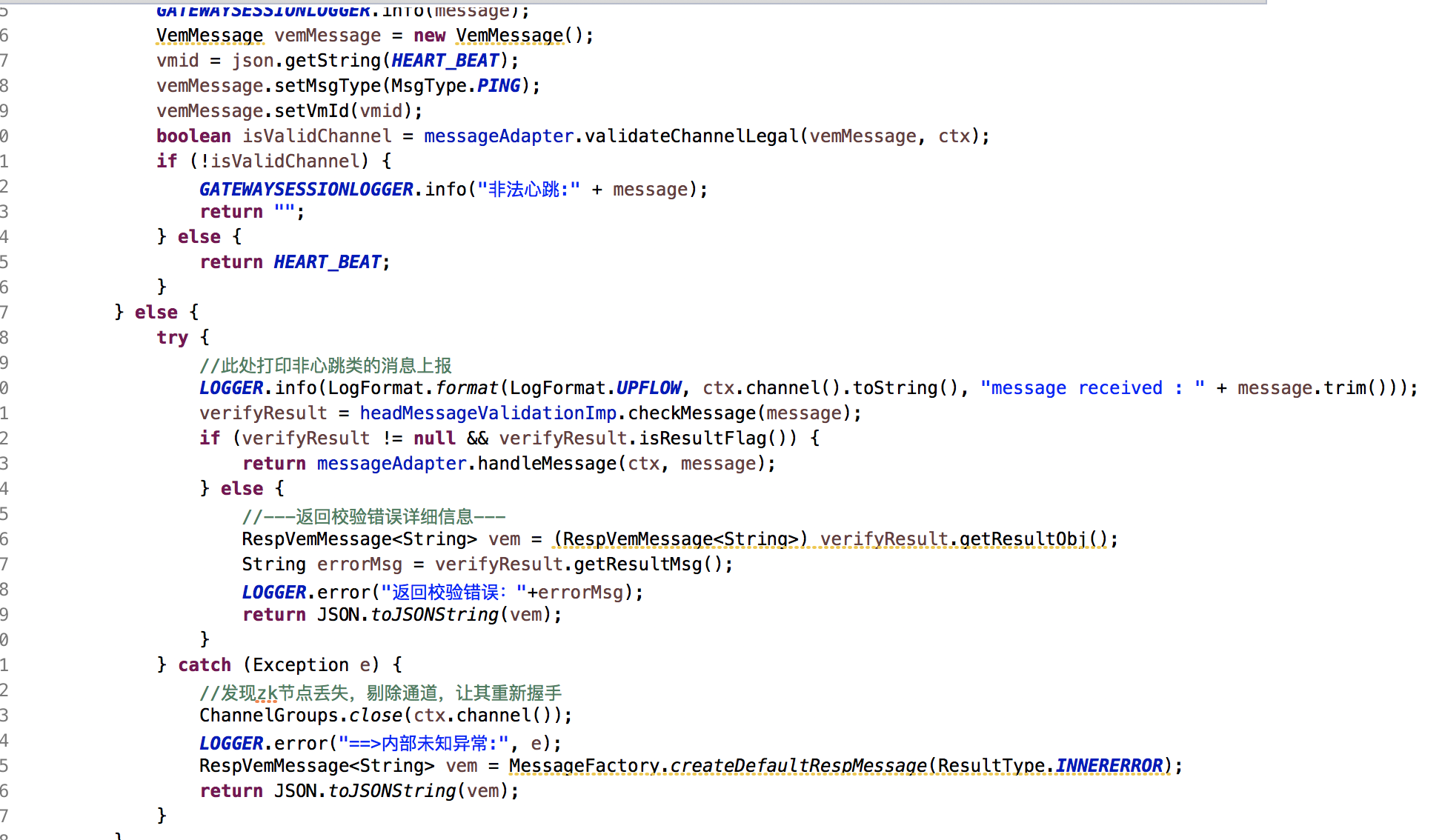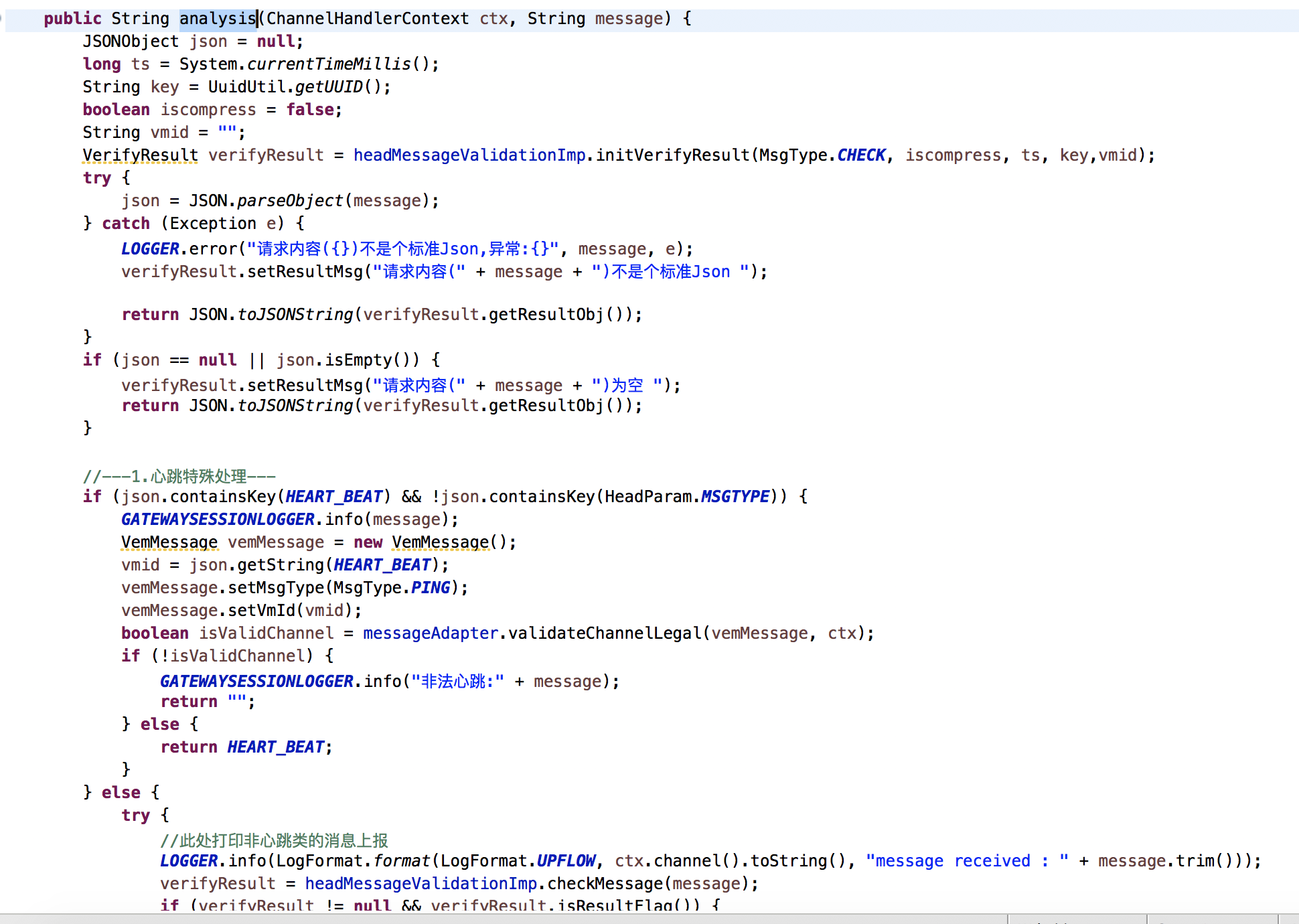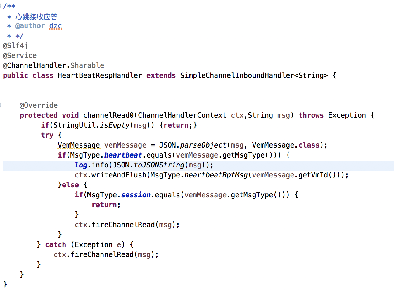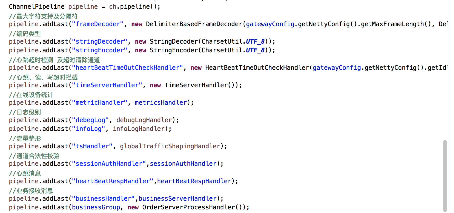 心跳与业务代码接收堵通道独立出来,利用netty注册链使用ctx.fireChannelRead做消息传递,使心跳与业务消息通道解耦。