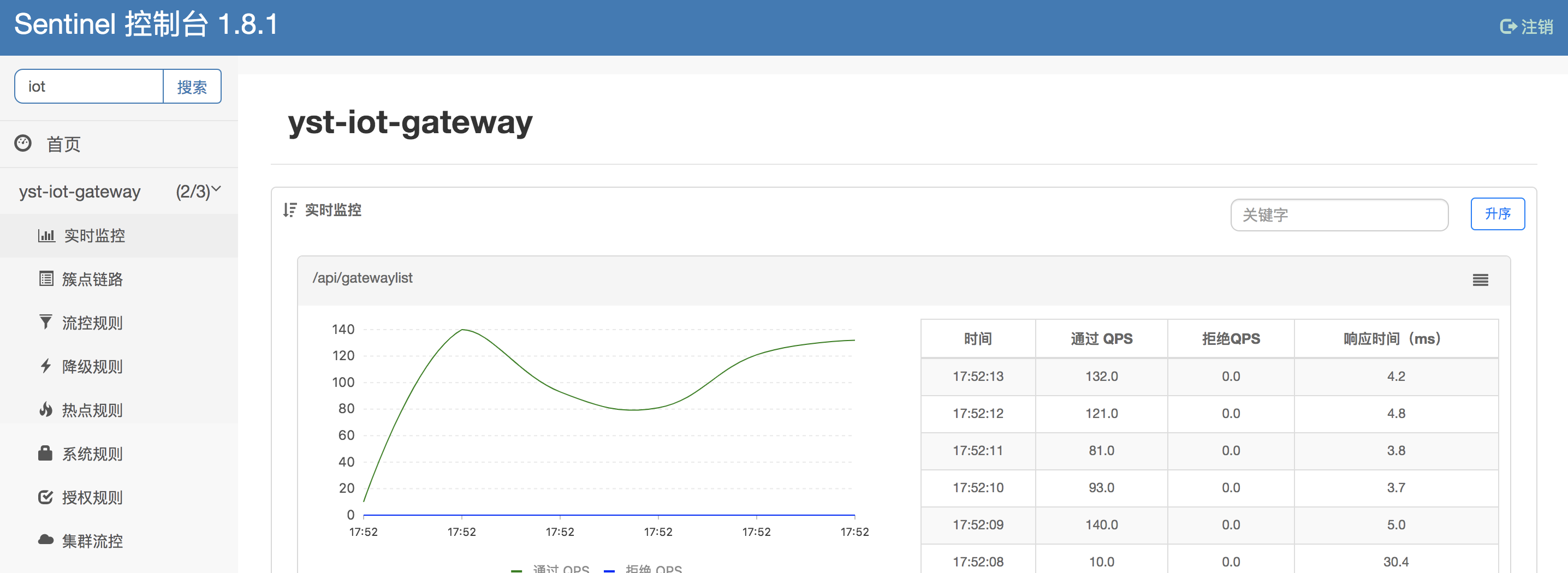 2、观察网关的各项指标,评估网关负载能力。