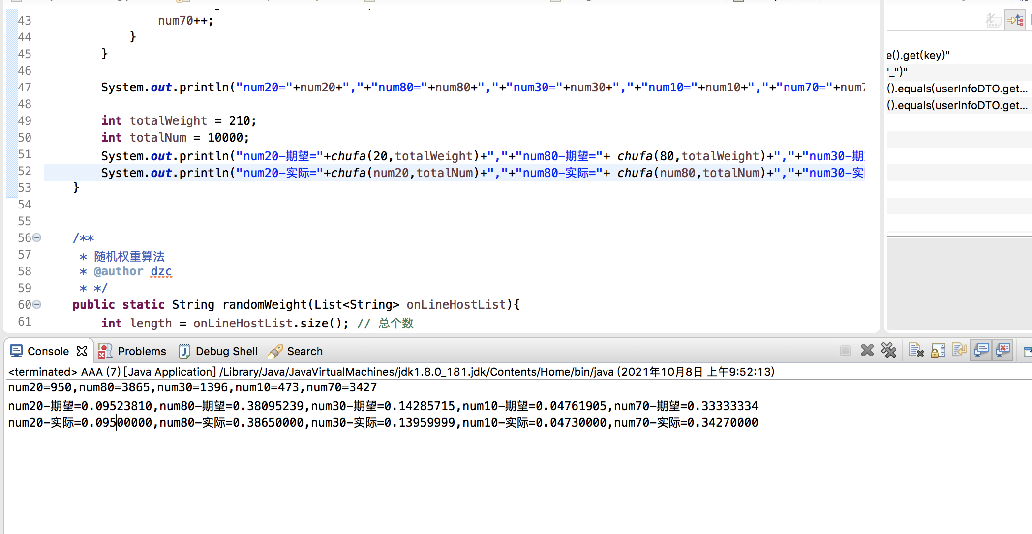2、在totalWeight范围内进行随机得到随机权重offsetWeight