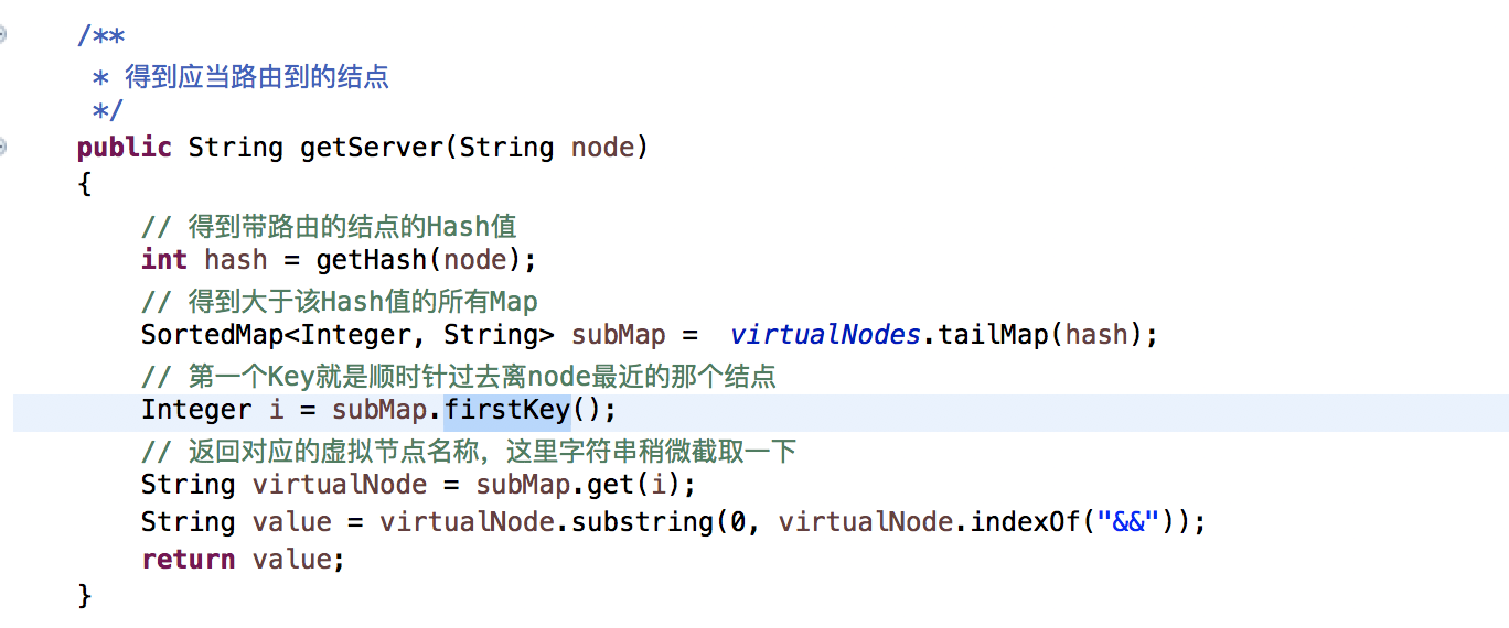 3、随机权重和每个节点的权重对比,如果权重落在第一个符合条件的节点权重范围内,就代表此节点被选中。