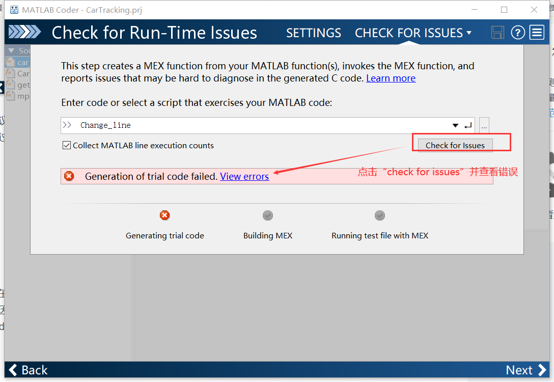 在点击“Generate”后也存在许多报错,需要按照提示修改函数.m代码