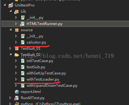 关于calcutor前的文章有相应的源码。可以找到,下面附出withTestLoader.py的源码: