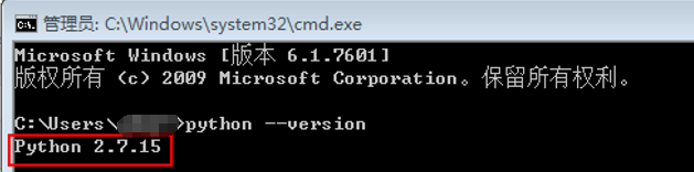 这里必须安装Python2.7版本,实测Python3不行,电脑上已经有Python2.7的话就不用再安装了,但是需要保证python的安装目录在环境变量里,可以在控制台输入“python –version”来查看是否安装好了。