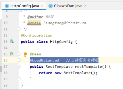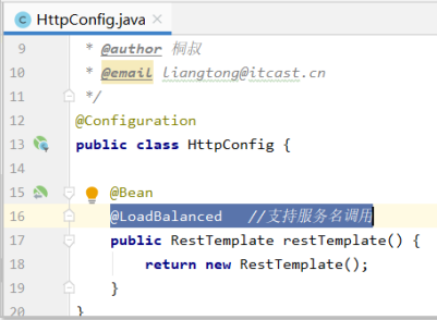 在RestTemplate的方法上添加@LoadBalanced注解即可