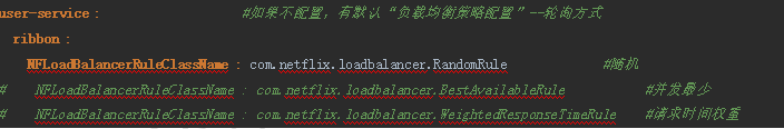 {服务名称}.ribbon.NFLoadBalancerRuleClassName=具体策略