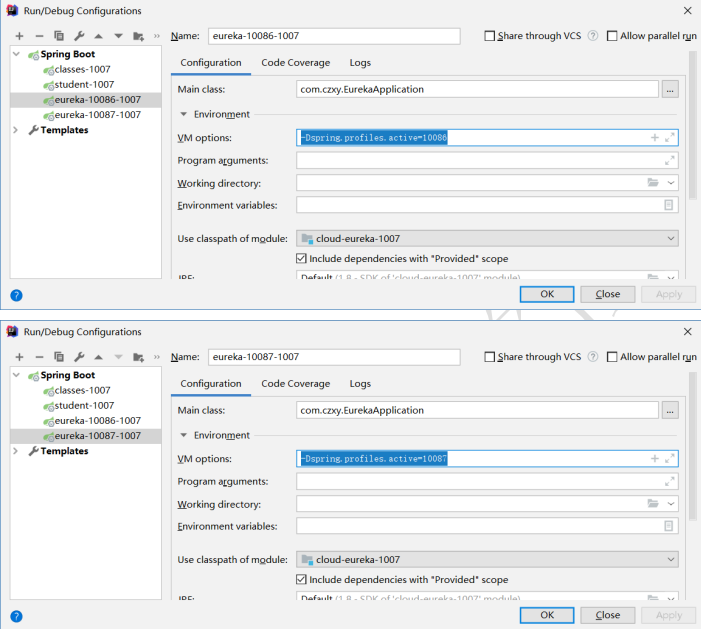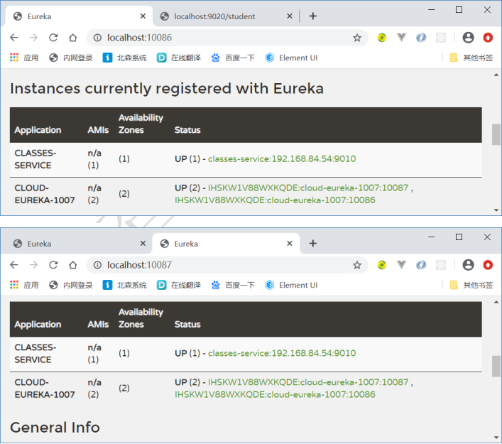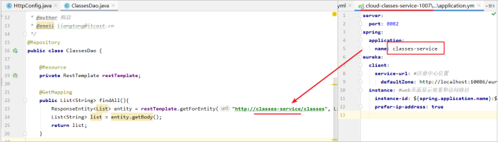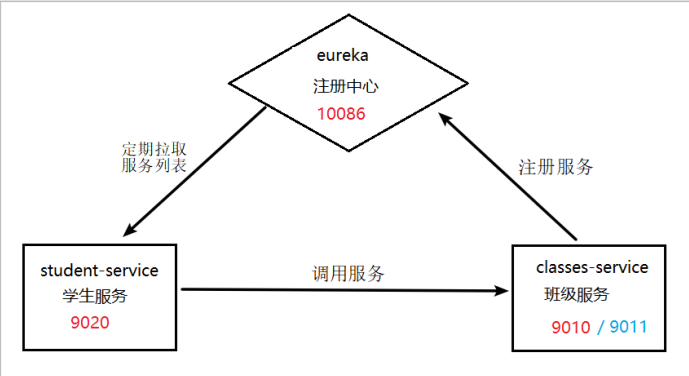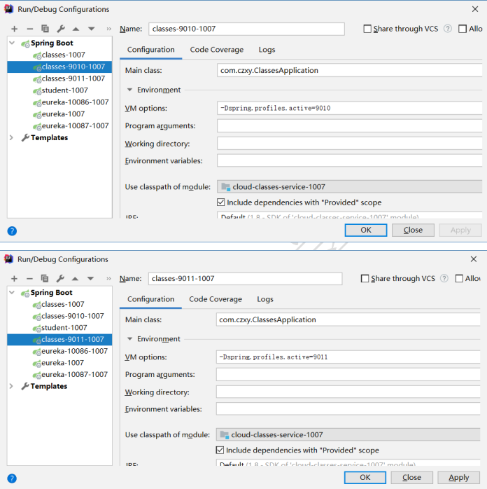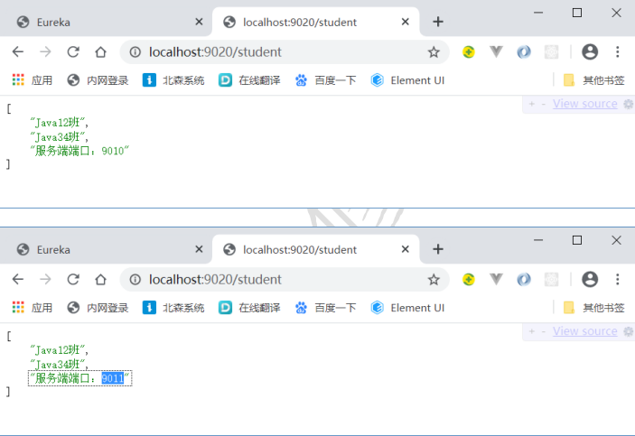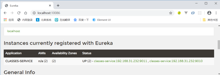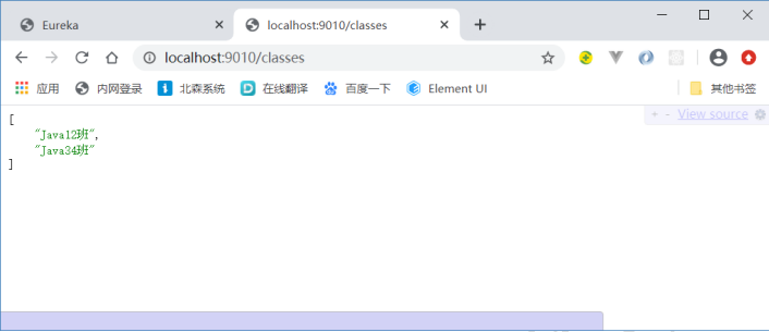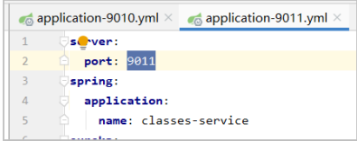 首先我们启动两个classes-service实例,一个9010,一个9011。