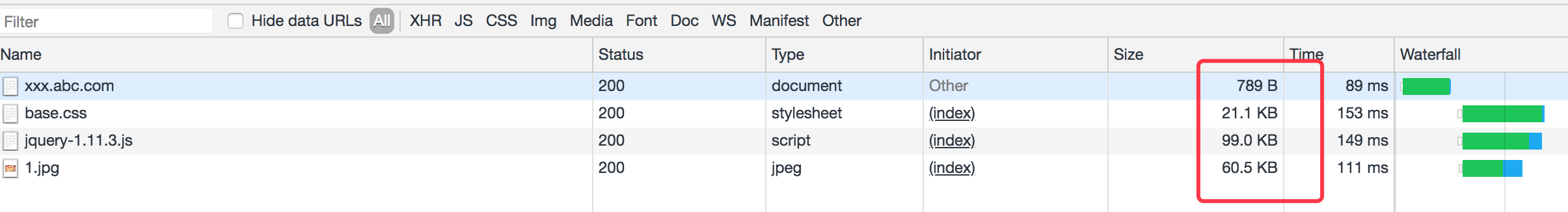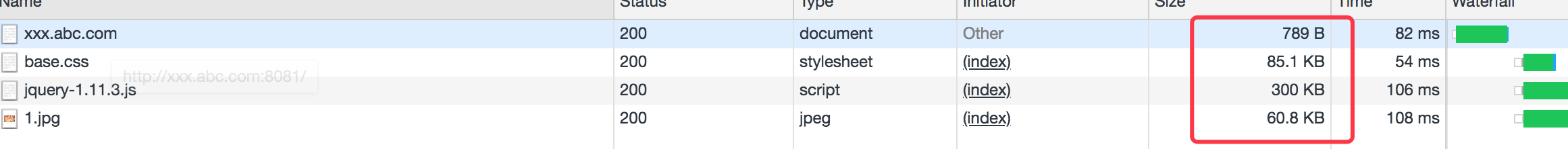 现在我们开启了gzip进行压缩后的文件的大小,可以看到如下所示: