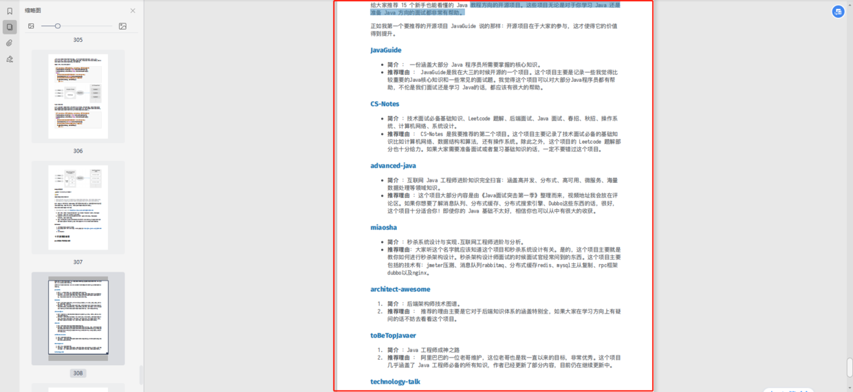 在文档的最后还给大家推荐了新手也能看懂的java教程⽅向的开源项⽬。这些项⽬⽆论是对于你学习 Java 还是