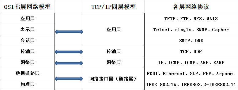 对比 TCP/IP 参考模型与 OSI 参考模型,TCP/IP 参考模型缺少 OSI 参考模型中功能比较少的表示层与会话层,而 TCP/IP 参考模型的网络接口层则相当于合并了OSI参考模型的数据链路层与物理层。
