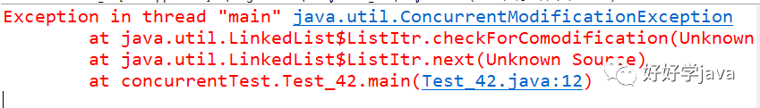 集合循环遍历时所使用的迭代器Iterator有一个要求:在迭代的过程中,除了使用迭代器(如:Iterator.remove()方法)对集合增删元素外,是不允许直接对集合进行增删操作。否则将会抛出 ConcurrentModificationException异常。所以,由于集合的for-Each循环本质上使用的还是Iterator来迭代,因此也要注意这个陷阱。for-Each循环很隐蔽地使用了Iterator,导致程序员很容易忽略掉这个细节,所以一定要注意。看下面的例子,for-Each循环中修改了集合。
