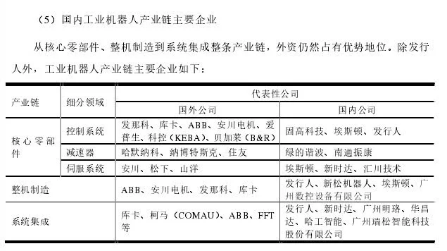 (国内机器人产业链;来源埃夫特招股书)