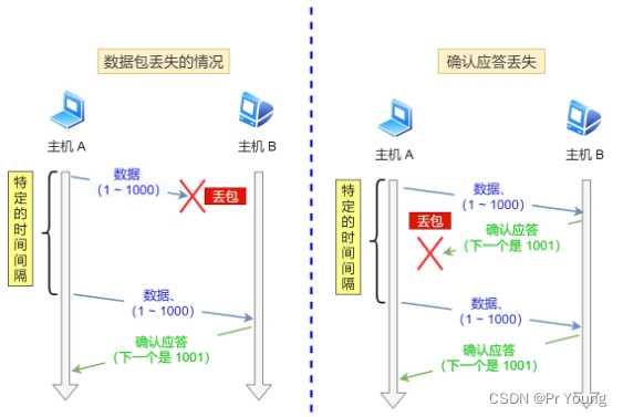 所以当数据包丢失或者是确认应答ACK丢失之后,发生超时重传