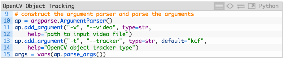 想要用OpenCV进行目标追踪,首先打开一个新文件,将它命名为opencv_object_tracker.py,然后插入以下代码: