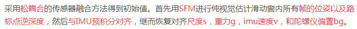 * 进行视觉惯性联合初始化或基于滑动窗口非线性优化的紧耦合VIO