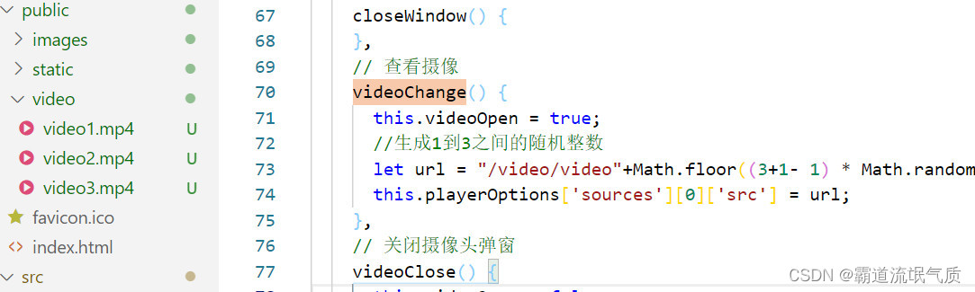以上就是坦率小伙最近收集整理的关于Vue中使用vue-video-player插件播放视频时src动态配置-指定范围整数随机获取拼接url场景实现的全部内容,更多相关Vue中使用vue-video-player插件播放视频时src动态配置-指定范围整数随机获取拼接url场景实现内容请搜索靠谱客的其他文章。