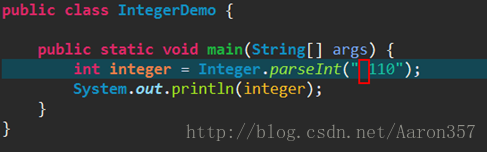 还要注意一点:前面的String要与后面的进制匹配,要不也会报NumberFormatException异常。比如parseInt(222, 2),就不合适,因为222不是二进制的。