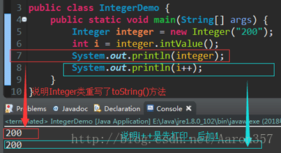 注:Integer类方法intValue(),将Integer(String s)包装后的对象转成基本类型int。引用类型不能进行基本类型运算。