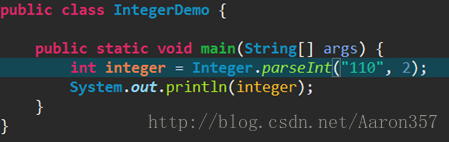 以上方法表示:将2进制的字符串形式的“110”转成10进制的int类型。