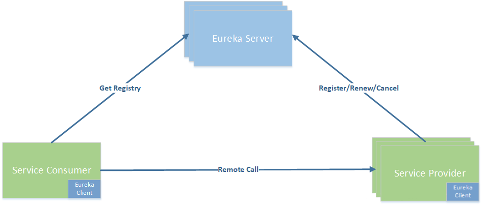 - Service Provider: 将自身服务注册到Eureka中,从而使消费方能够找到。