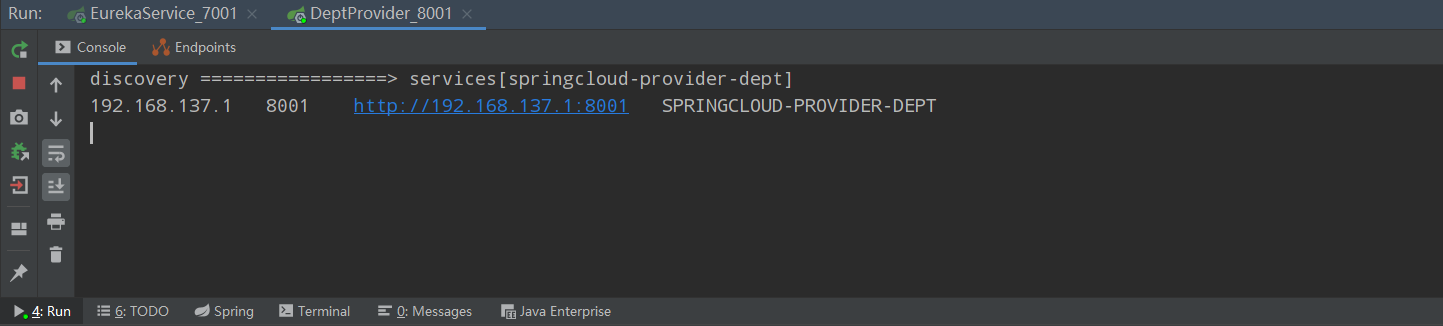截止目前:服务端也有了,客户端也有了,启动7001,再启动8001,测试访问: