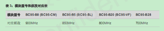 模块型号和对应频段如下: